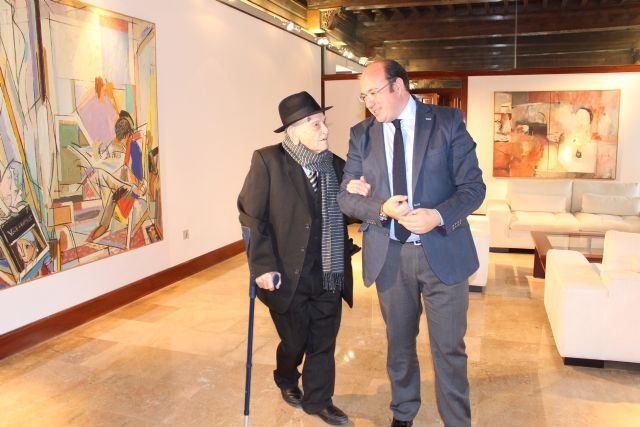 El presidente de la Comunidad, Pedro Antonio Sánchez, recibió hoy en el Palacio de San Esteban al trovero murciano Juan Tudela Piernas, conocido como ‘el tío Juan Rita’, que el próximo 14 de febrero cumplirá 104 años, gran parte de los cuales los ha dedicado al arte del trovo y a la conservación del folclore regional como expresión de la cultura popular.